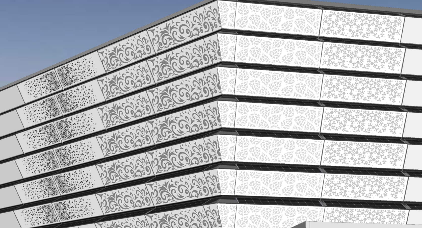 Zonnegevels (MD Fasolar) zijn veelzijdig en combineren moeiteloos met andere gevelproducten van Metadecor, zoals MD Designperforatie, MD Strekmetaal en MD Formatura voor een fraai en functioneel patroon of reliëf. Ook kunnen fotovoltaïsche elementen worden geïntegreerd in lamelconstructies met MD Lamel, of afgewerkt met vlakke panelen als MD Flack voor een strak ontwerp.